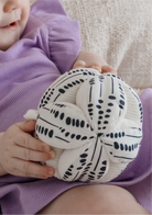 The Organic Sensory Ball, is made from organic cotton and carefully scaled for visual development. Its stitched contrast and soft structure offer gentle resistance and rich sensory feedback, perfect for early grasping, tracking, and mouthing.